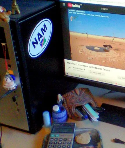 Last but certainly not least, a small sandstone pebble roughly 1” by 1” by ¼” that she picked up in the area close to NamibiaCam’s “NC” camera – still lightly dusted with the Namib desert’s trademark orange dust.