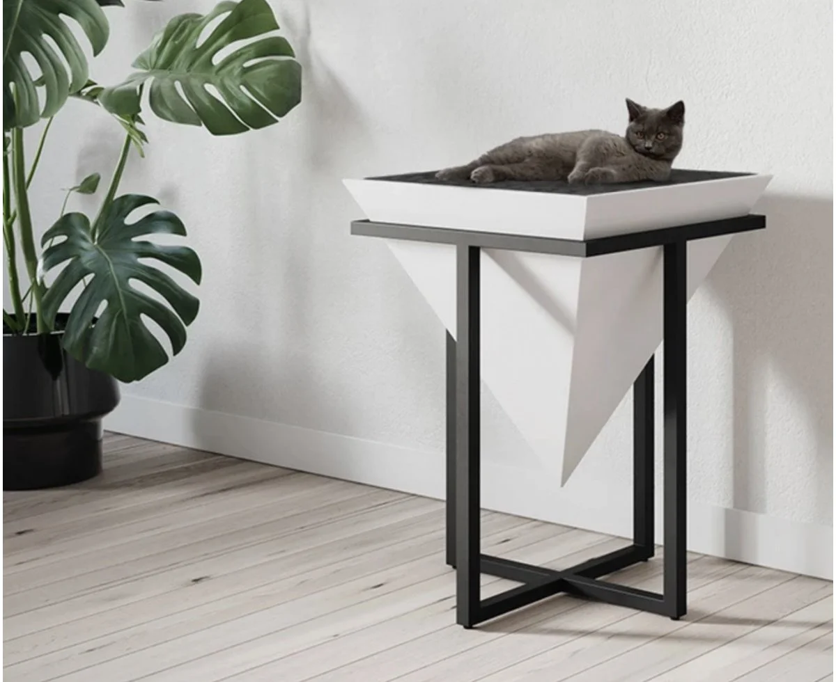 Elevate your cat with purr pyramid power! The Royal Pyramid Modern Elevated Cat Bed puts your pampered purring pet on a pharaonic pedestal.
