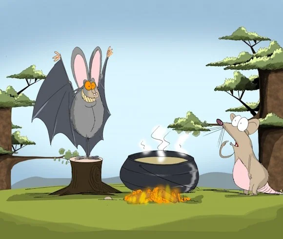 "I always boil myself in the water, and my flesh is sweet," the bat explained. "That's what makes the soup so good." But he was lying!