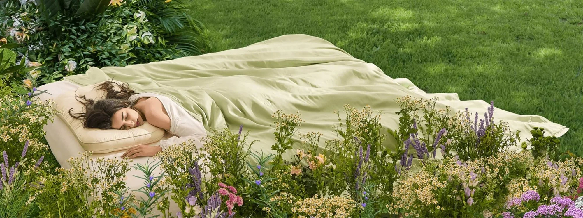 Promeed's diverse product lines include premium Mulberry Silk, herbal-infused bedding, cooling comforters, skin-like silicone comforters, and hyaluronic acid silk series.
