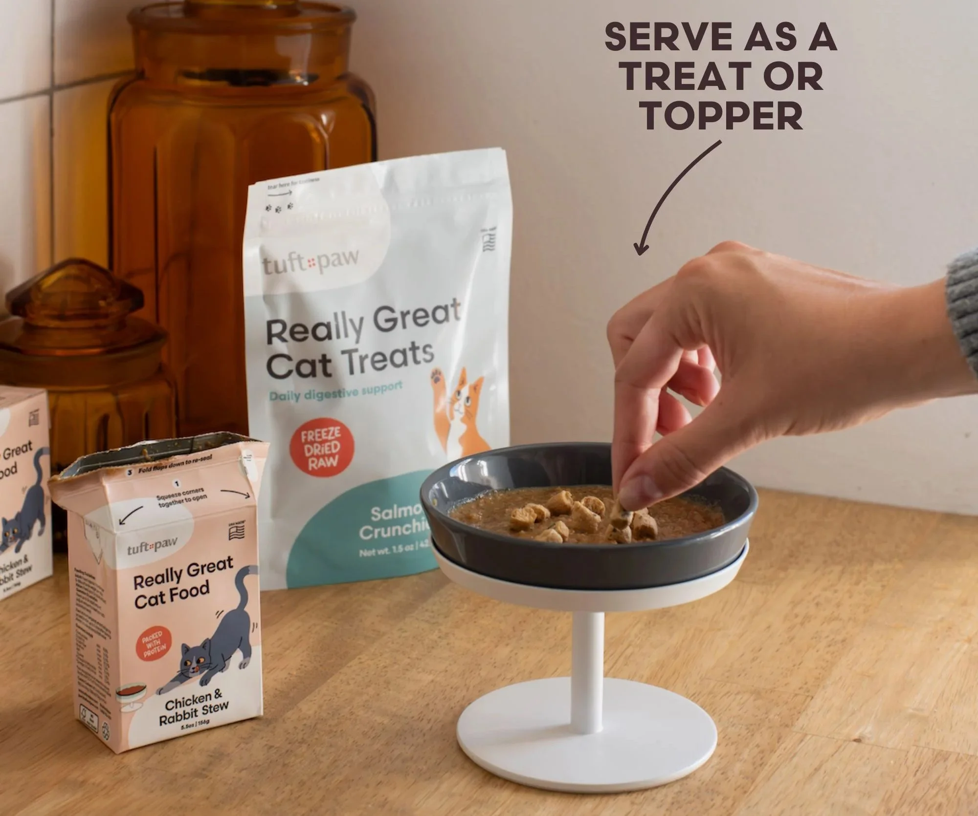 Really Great Cat Treats support your pet’s gut health with wild-caught salmon and a freeze-dried, crunchy texture cats crave!